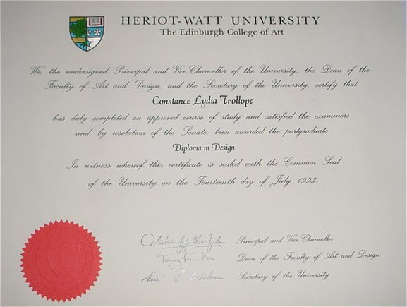 Certificate of Studies - Bachelor of Arts in Design Degree.Abschluß-Diplom der Kunstakademie. |