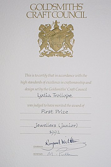 Certificate - Worshipful Company of Goldsmiths Award 1993. |