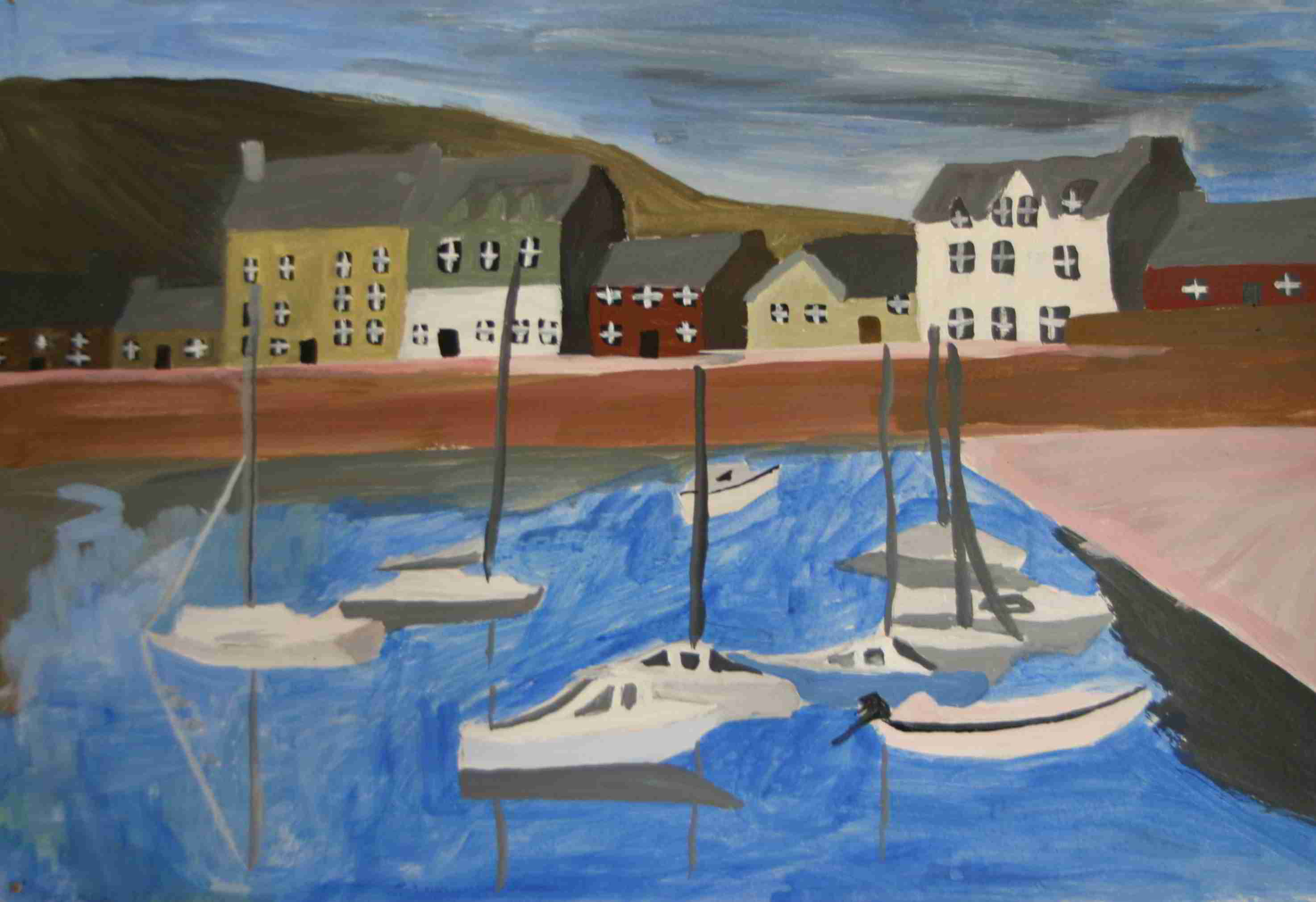 Als Vorlage diente hier ein ein Acryl Gemälde von mir. Dargestellt wird ein Hafen in Schottland.